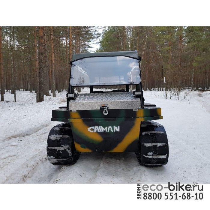 Вездеход CAIMAN многофункциональная техника, которая справится с транспортировкой тяжеловесных грузов (например, гружёные прицепы леса) и выдержит водную нагрузку, за счёт герметичности кузова. Широкие гусеницы обеспечат высокую проходимость по непроторённым тропам, болотам, заснеженным полям. CAIMAN легок в обслуживании, вплоть до отсутствия потребности снимать ремонтопригодный узел. Вездеход состоит из независимых друг от друга деталей, которые всегда доступны к продаже. Каждая техника CAIMAN проходит предпродажную проверку, о чём сообщает нанесенный на кузов индивидуальный номер.